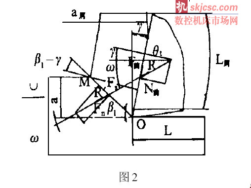 切削在切削合力R的作用下被切除。ω角是切削合力R 與切削速度方向的夾角, 表示R合力作用到切削層金屬的方向, 稱為作用角。