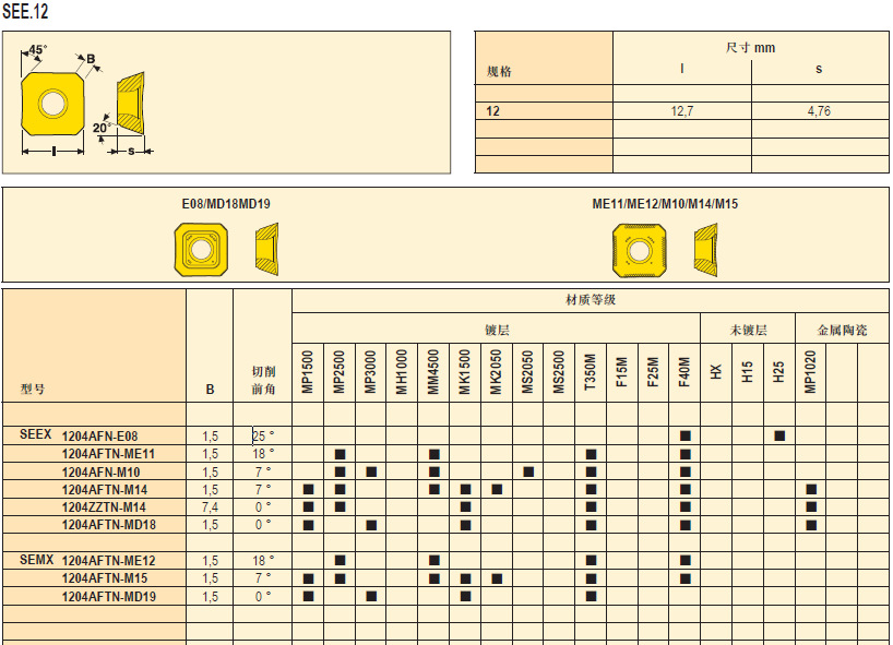 山高銑刀片SEEX1204AFN-E08 F40M瑞典山高刀具