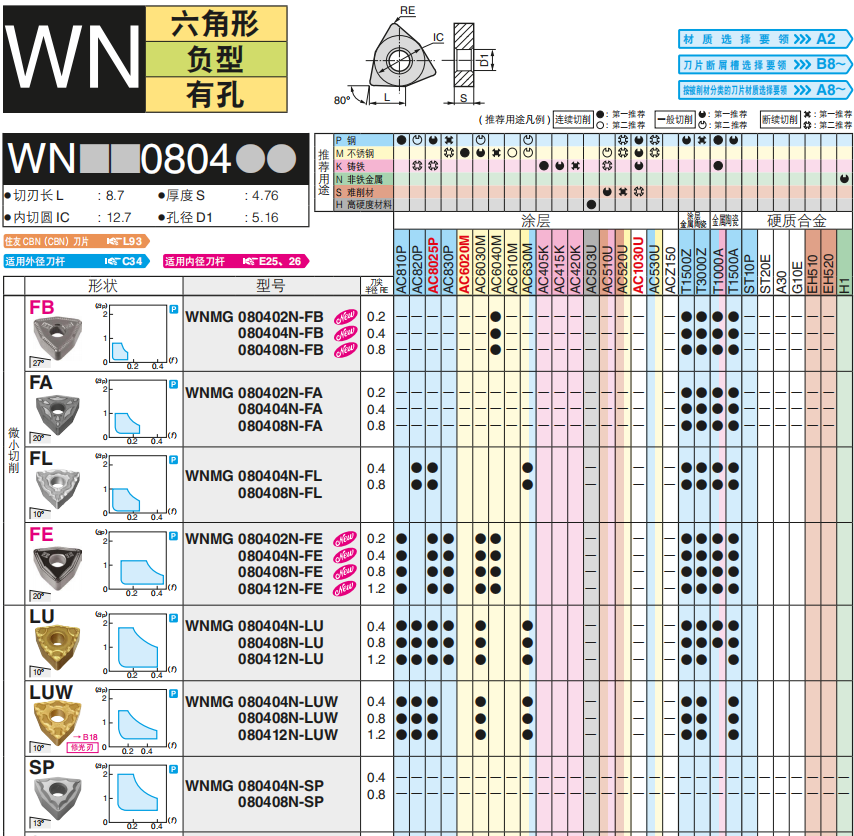 住友刀粒 車削刀片 WNMG080412N-FE AC6030M 不銹鋼刀片