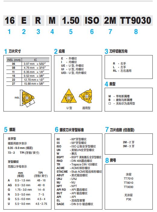 特固克內螺紋刀片 11IR/L 1.25ISO TT9030 PVD涂層