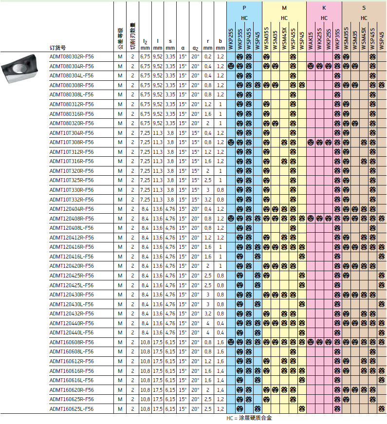 全系列瓦爾特數控刀片ADMT160620R-F56 WSP45菱形銑刀片